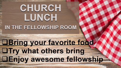 You are invited to attend a lunch in the church fellowship room immediately following the Baptism service. Enjoy food that others bring and even bring something yourself for others to enjoy. The church will provide the drinks. Everything else is provided by everyone that attends.